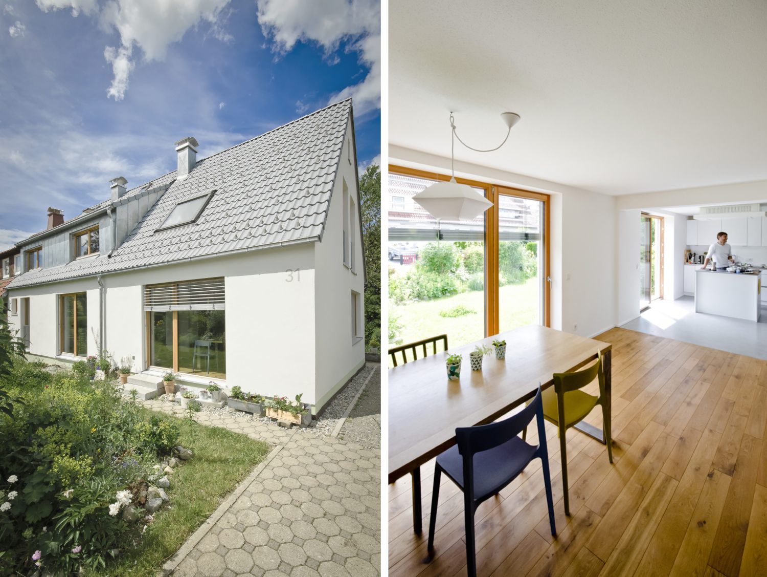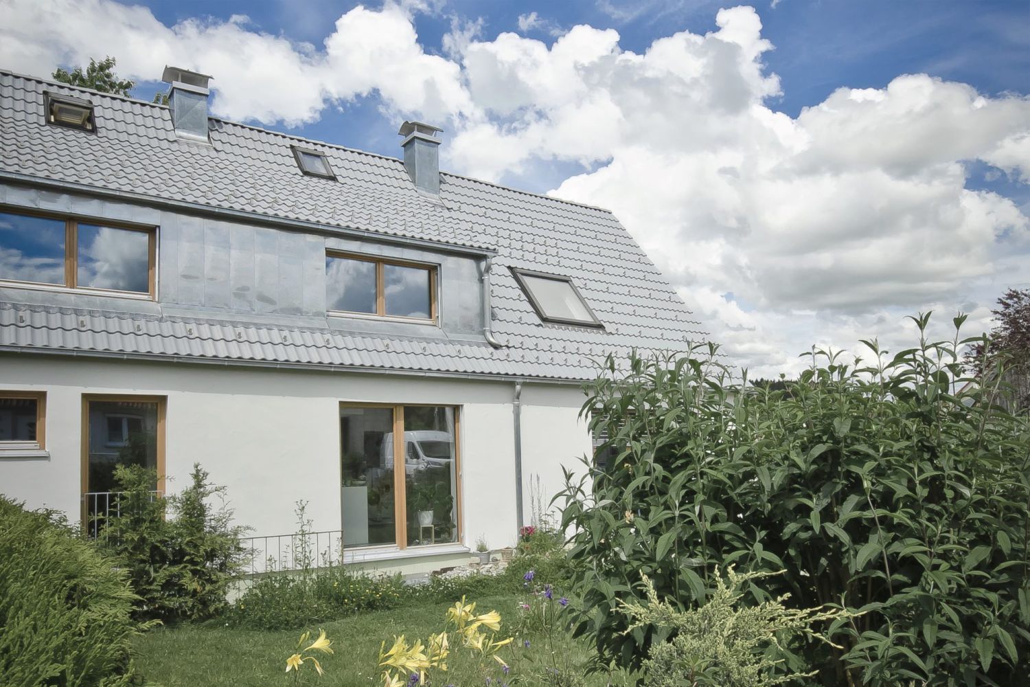 Siedlungshäuser aus den Jahren 1950 – 1960 mit steilen Satteldächern prägen die Repsweihersiedlung in Leutkirch im Allgäu. Um die Qualität der gewachsenen Siedlungsstruktur mit den kleinen Häuser zu erhalten wird die vorhandenen Doppelhaushälfte behutsam saniert.