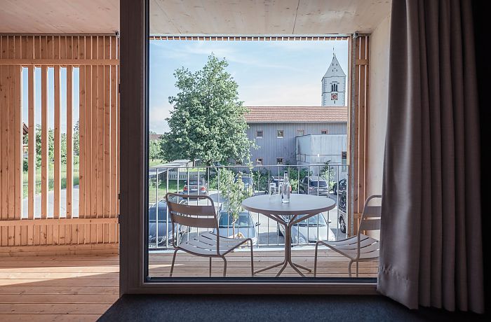 In Urlau wird das Gebäudeensemble des Hotel Hirsch durch einen Hotelneubau erweitert. Die Höhen werden von der umgebenden Bebauung aufgenommen und das langgestreckte Gebäude definiert klar den Ortsrand. Der Neubau enthält 25 Zimmer und einem Veranstaltungssaal. Das Untergeschoss sowie der Erschliessungskern werden aus Stahlbeton gebaut. Die restlichen Geschosse als Holzbau aus Massivholz konstruiert.