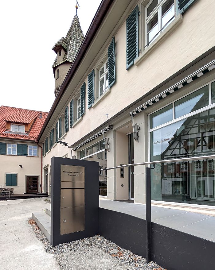 Das Kulturdenkmal "Bauhütte" am nördlichen Marienplatz von Ravensburg wird zur Musikschule und zwei kleinen Gewerbeeinheiten umgebaut. Das an die Stadtmauer angebaute Gebäude wurde nach einer umfassenden Sanierung in den 1980er Jahren zuletzt vor allem als Verwaltungsgebäude genutzt. Teile des Gebäudes gehen auf das 14. Jahrhundert zurück.