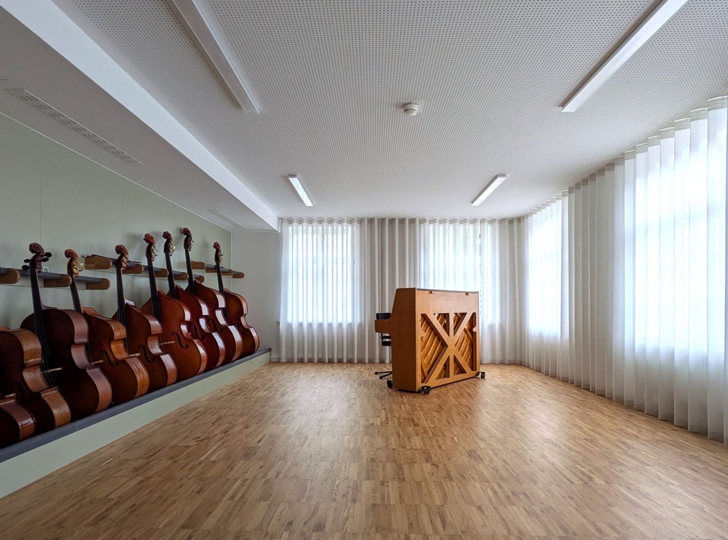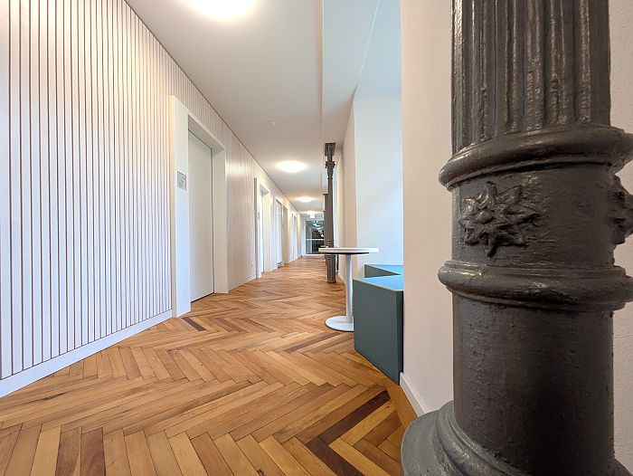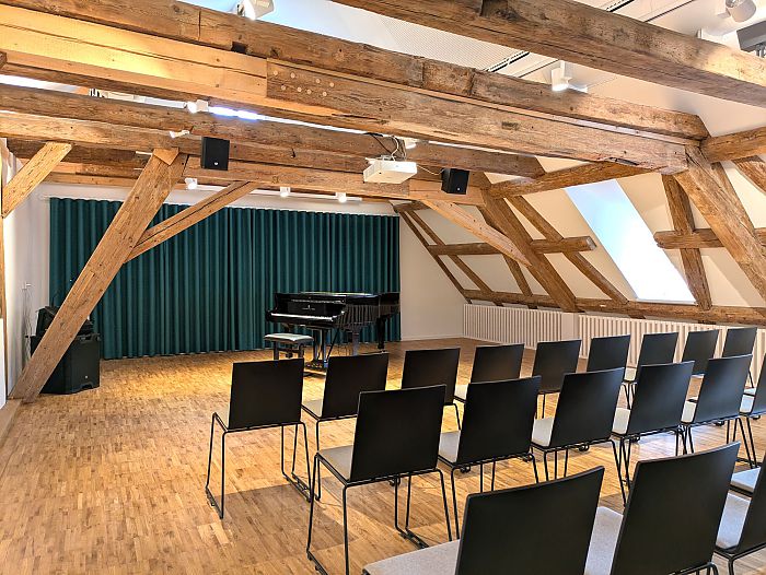 Sämtliche denkmalpflegerisch nicht relevanten Einbauten werden entfernt. Das vorhandene Holz-Stahl Tragwerk wird an die neuen Anforderungen angepasst und grundlegend denkmalgerecht saniert. Die Raumstruktur wird unter Berücksichtigung der Substanz neu entwickelt. Hierbei werden die ältesten Bauteile, wie Stadtmauer und Wehrgang möglichst freigespielt und erlebbar gemacht. Neben den 24 Unterrichtsräumen werden ein kleines Foyer, Verwaltungsräume und ein Vortragssaal im Dachgeschoss geschaffen. Der Innenausbau erfolgt gemäß der Schall- und Brandschutzanforderungen in Trockenbau und Holz.