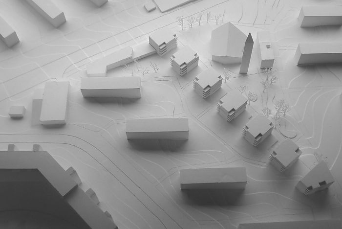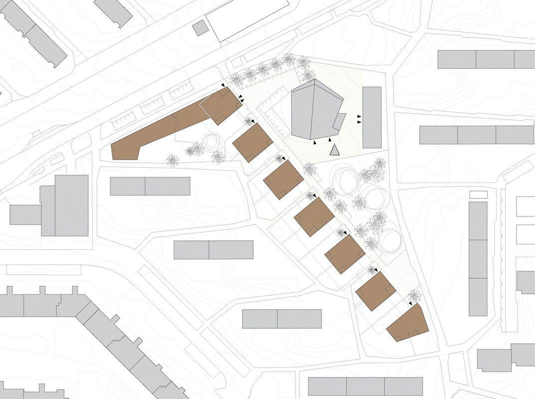 Neuordnung und Nachverdichtung einer 70er Jahre Siedlung mit Geschosswohnungsbau und einem Kinderhaus in Bietigheim-Bissingen.